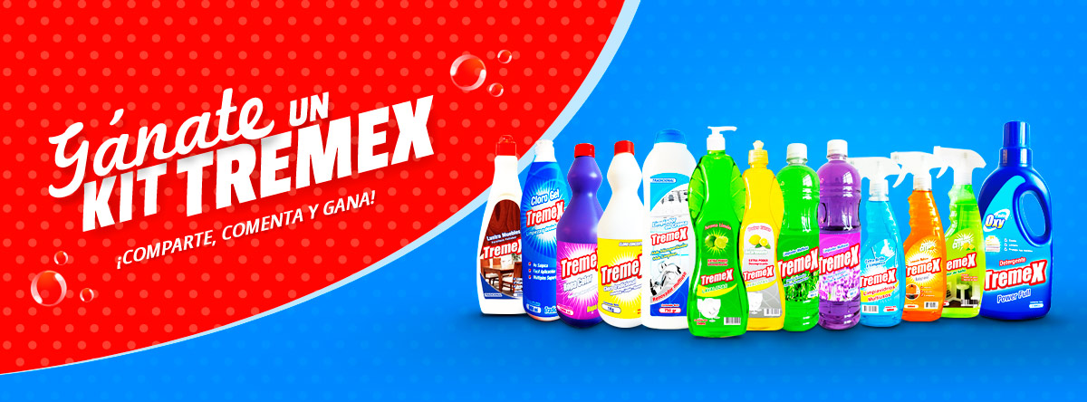La Familia Tremex ahora regala 2 Kit de productos, para el aseo y desinfección de tu hogar. ¡Entra a nuestro Fan Page en Facebook y participa, para ser uno de los grandes ganadores de esta semana! Recuerda revisar las bases legales del concurso.
