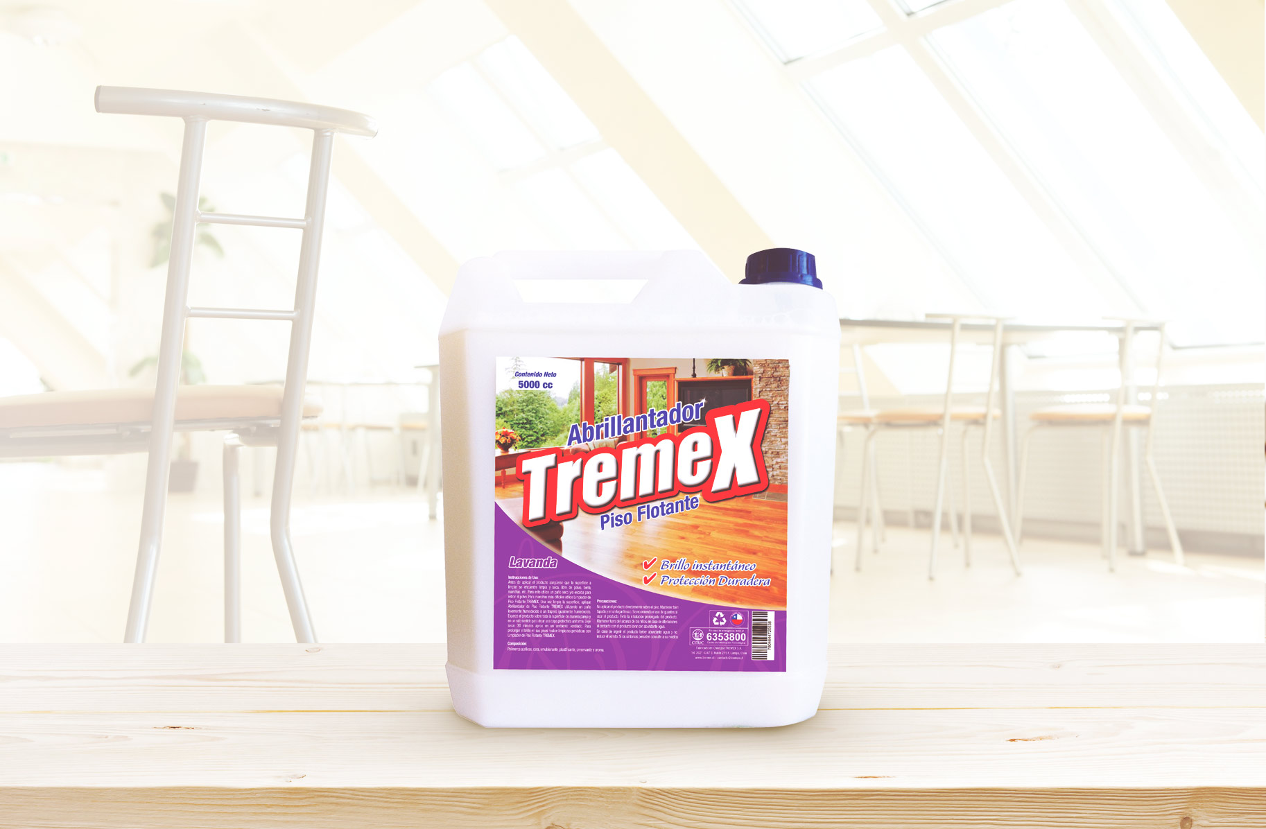 Tremex® presenta su Abrillantador para Pisos Flotantes que tiene la característica de ser un sellador por lo que provee protección duradera a los pisos de maderas. Gracias a su formulación en base a polímeros acrílicos, solventes, preservante biodegradables y fragancia puede ser usado para cualquier tipo de habitación con piso flotante y/o madera (Oficina y casa). Es de muy fácil aplicación, pule, protege, proporciona alto brillo y es resistente a tráfico medio.